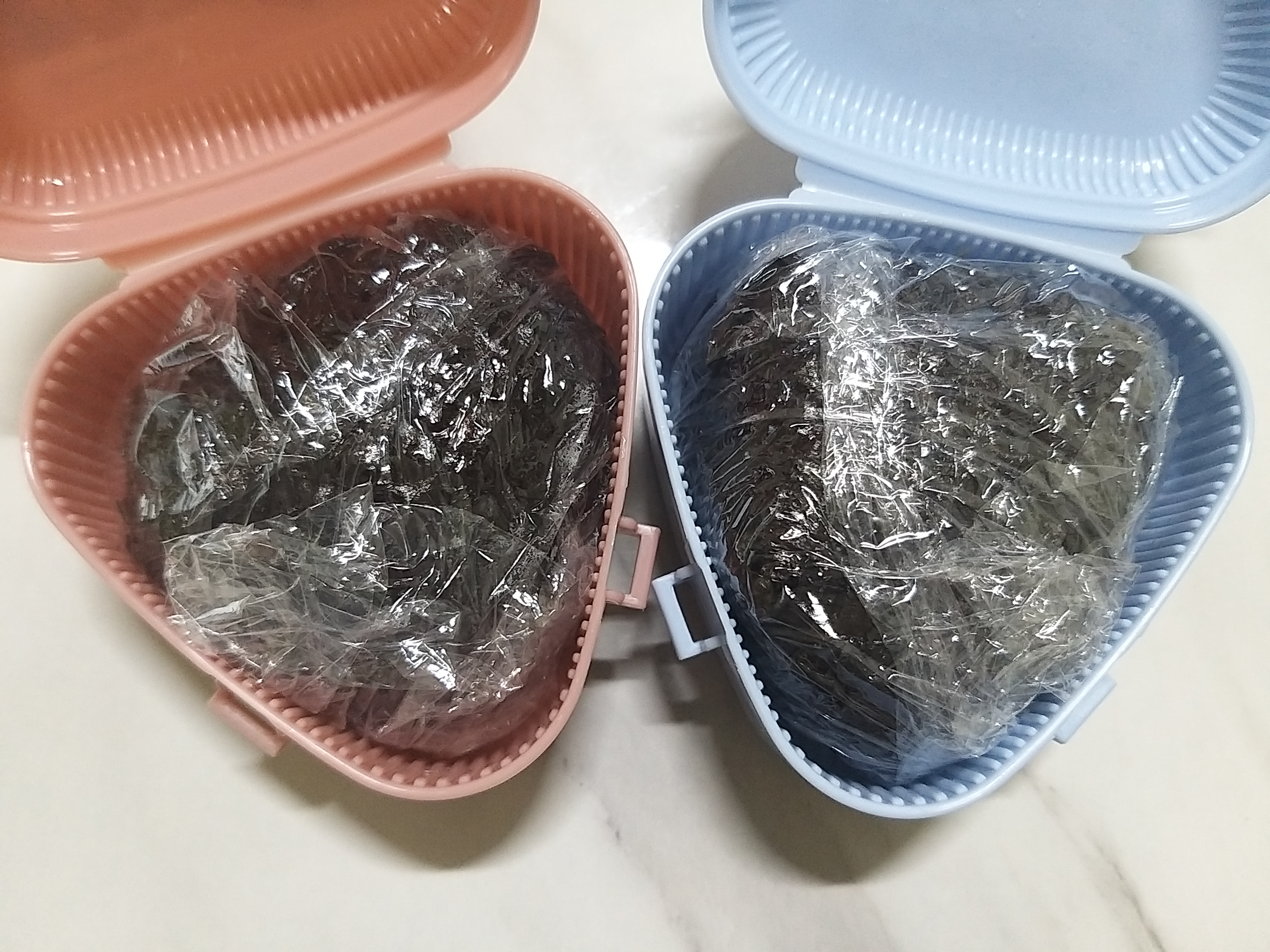 김이 밥의 습기로 잘 달라붙도록 랩으로 감싸주고 케이스에 넣어주면 끝🧚♀️